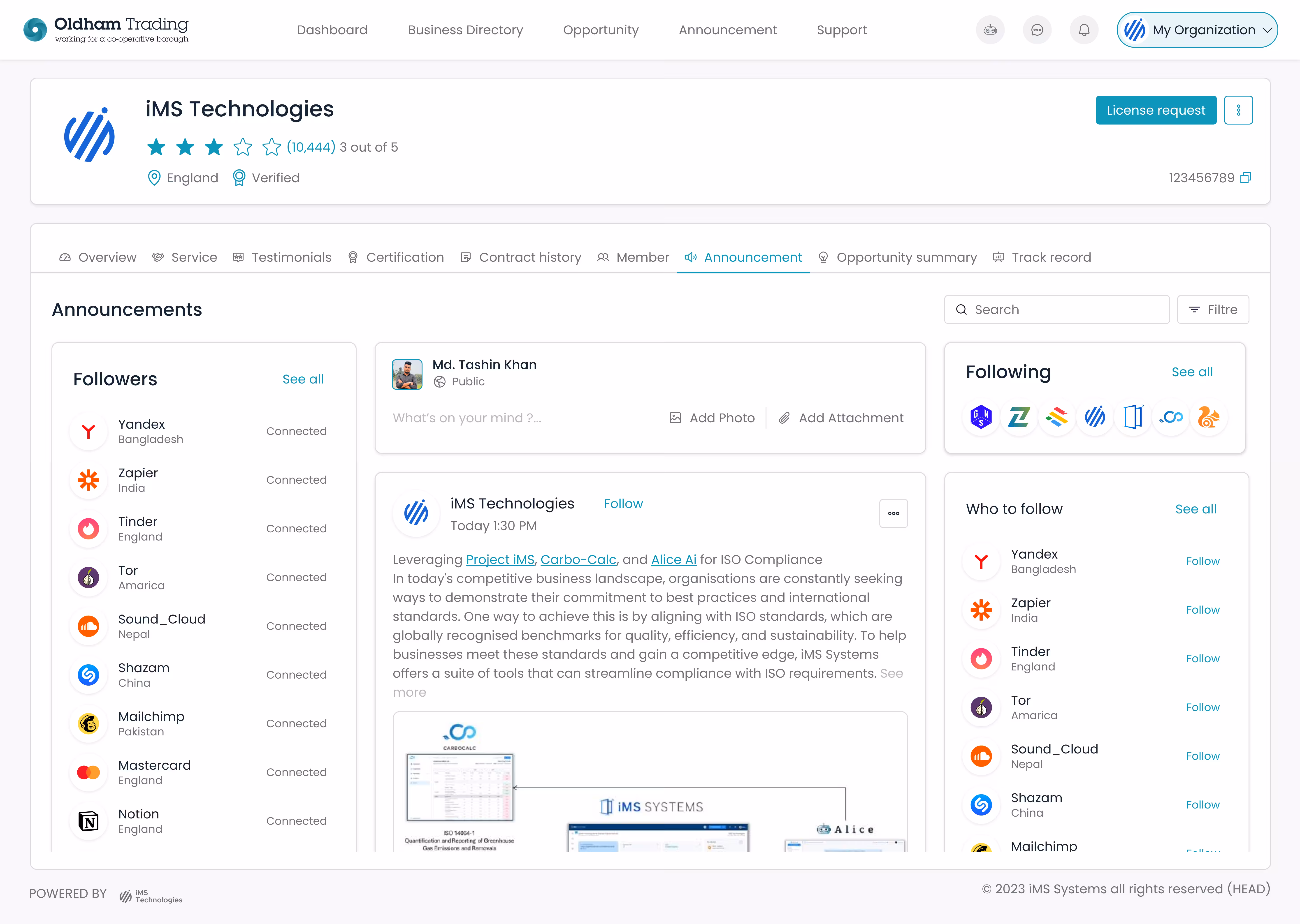 Verified business profiles, compliance records, and trust scores.
